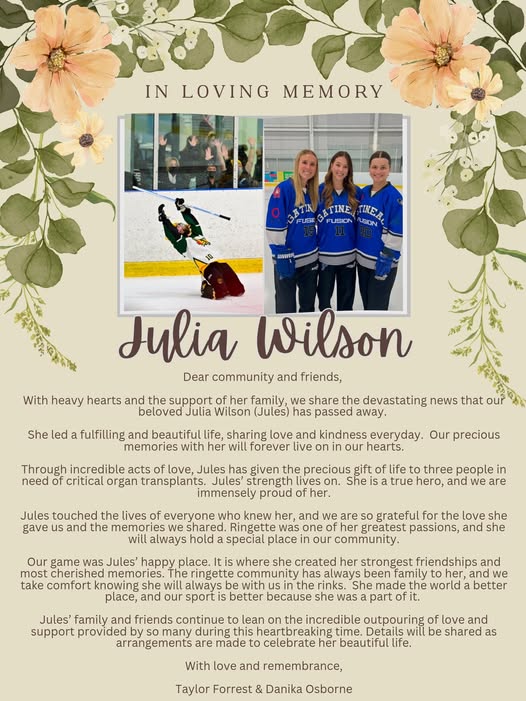 The loss of Julia is not only felt within the GCRA or local Ottawa Ringet community; It has taken regeneration in the entire Ontario Ringet community. His commitment to the game and the connections he made with others left a permanent impression, and his death left a significant zero in the world of ringette. However, Julia Wilson’s spirit ends in every player who steps on ice with determination and passion. His legacy lives in the way he inspired others to pursue his boundaries, be kind to each other, and embrace the true sense of sportsmanship.