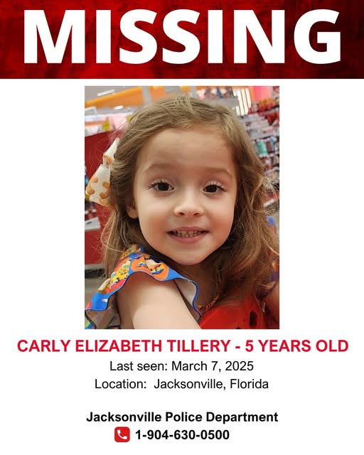 The family of Carly Elizabeth Tillary is seeking strict help after disappearance at Jacksonville, FL on March 7, 2025. Carly, a bright and cheerful 5-year-old, has been a source of happiness for all the people around him, and his sudden disappearance has destroyed his family. They are approaching the community to assist their beloved daughter.