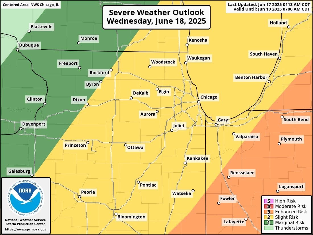 According to SPC Outlooks, most part of the Chikagoland region falls under “minor risk” (level 2 of 5), which indicates the possibility of scattered severe storms. However, far south -entrepreneurs, including Kankeke, Wataseka, and parts of Northwest Indiana, are under “increased risk” (level 3 of 5). Increased risk means that the environment in these regions is more intensified and more favorable for the wide severe weather, including the ability of more intense storms and more likely to form tornadoes.